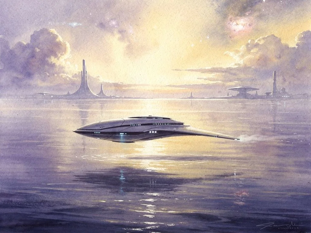 A pale blue horizon. Oceans breathing beneath light. A new beginning- new world under a new sun. Part of the EA (Earth) album — a continuation of a larger sci-fi narrative shaped by dream imagery, memory, and speculation.